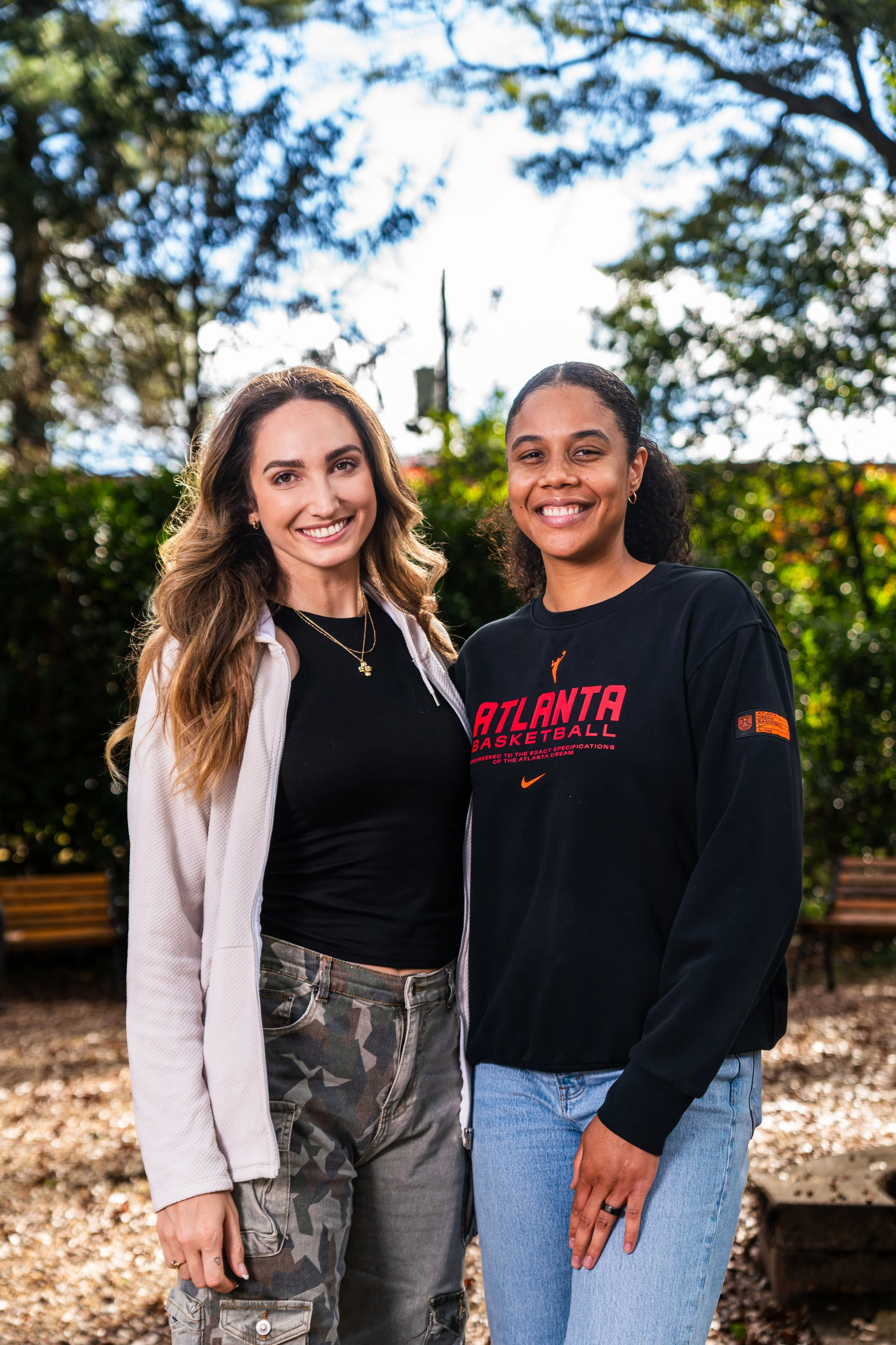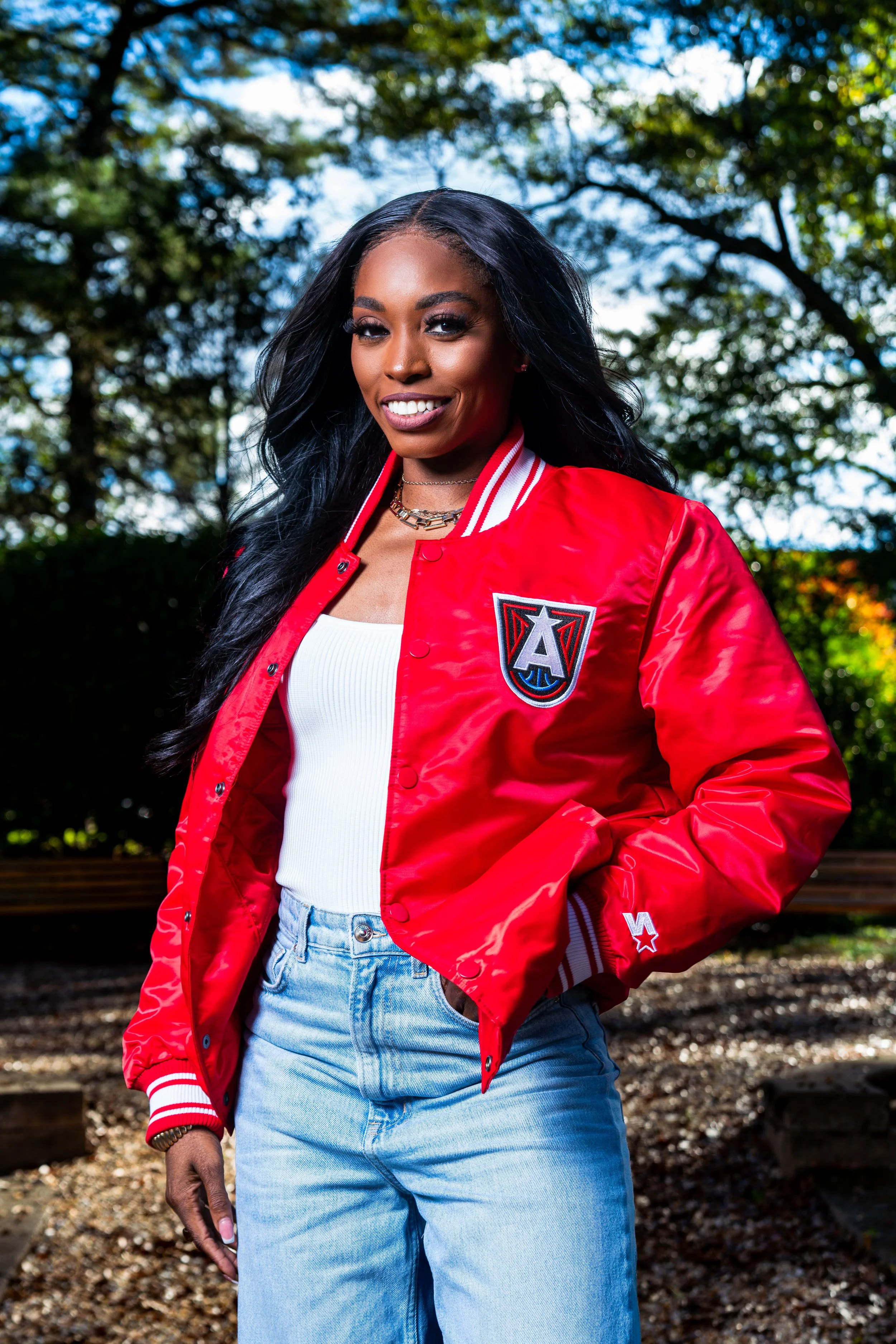 A woman in a white dress and graduation cap sitting on a ledge in front of a blue-lit fountain at night, smiling and posing.